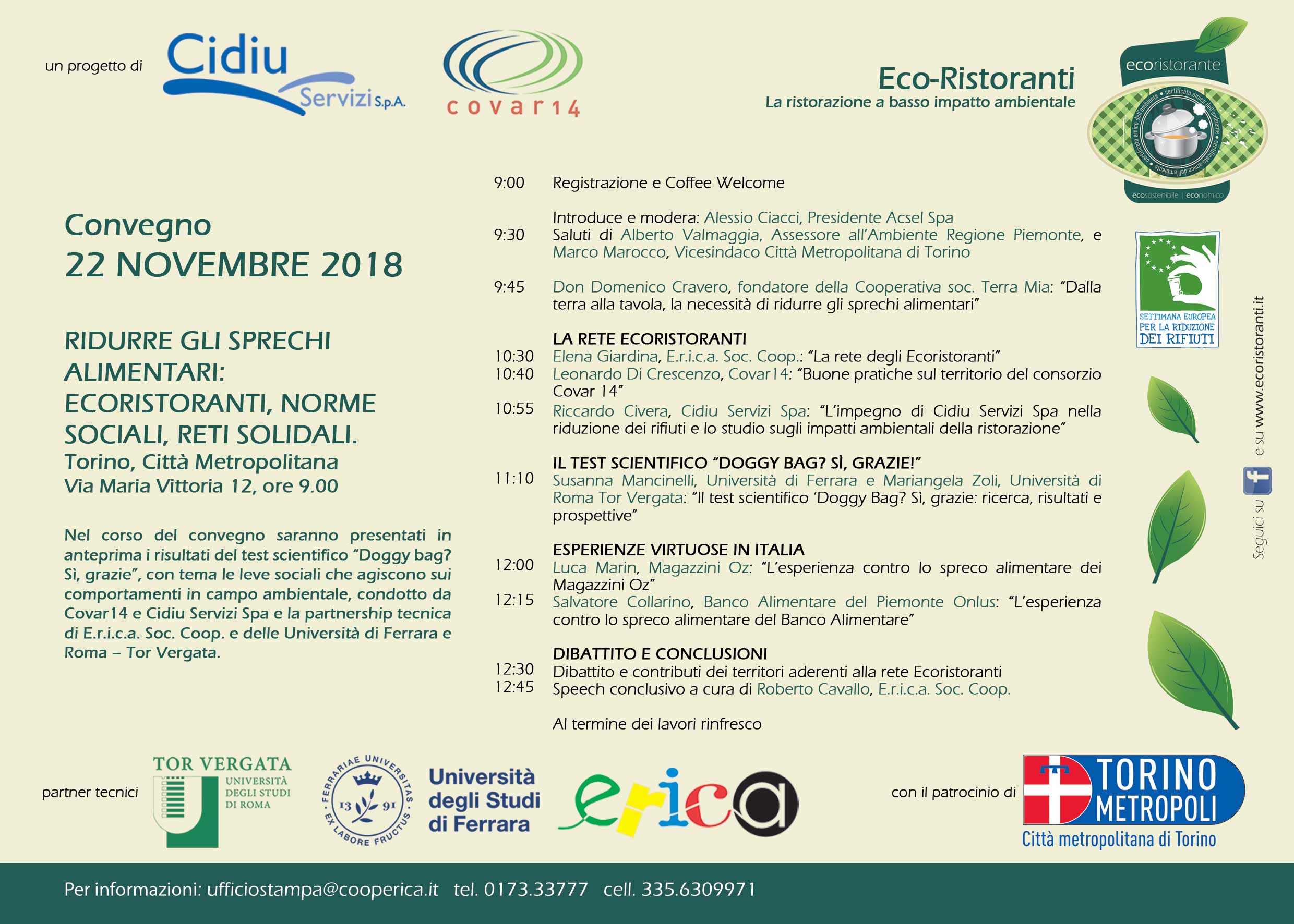 CIDIU Servizi SpA e COVAR 14 hanno organizzato il Convegno “Ridurre gli sprechi alimentari – Ecoristoranti, norme sociali, reti solidali” nel corso del quale saranno presentati in anteprima i risultati del test scientifico “Doggy bag? Si, grazie”, con tema le leve sociali che agiscono sui comportamenti in campo ambientale.